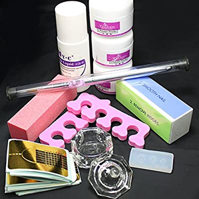 If you are looking for an inexpensive acrylic nail kit that will serve your basic needs and that includes everything that you might need for this purpose, then this is the product that you should opt for. It is a small kit that includes ½ oz of liquid monomer, ½ oz of clear acrylic powder, ultra-quick nail glue, as well as a top coat that has ultra-gloss. Also, it comes with 20 nail tips that will help you do your first 20 manicures. The ½ oz primer is also essential and included in this kit. A straight nail file, a nail brush and an emery block can be found in this package, too.