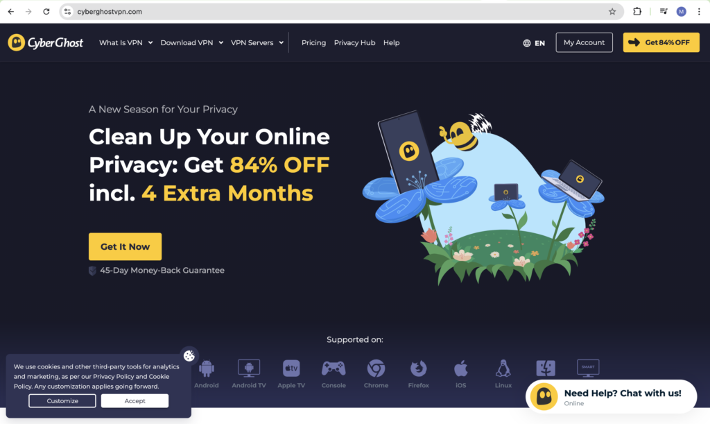 CyberGhost is an excellent performer in terms of privacy and security. It involves 256-bit encryption that is backed with a kill switch and DNS protection. Additionally, it does not monitor your activities or keeps log records.